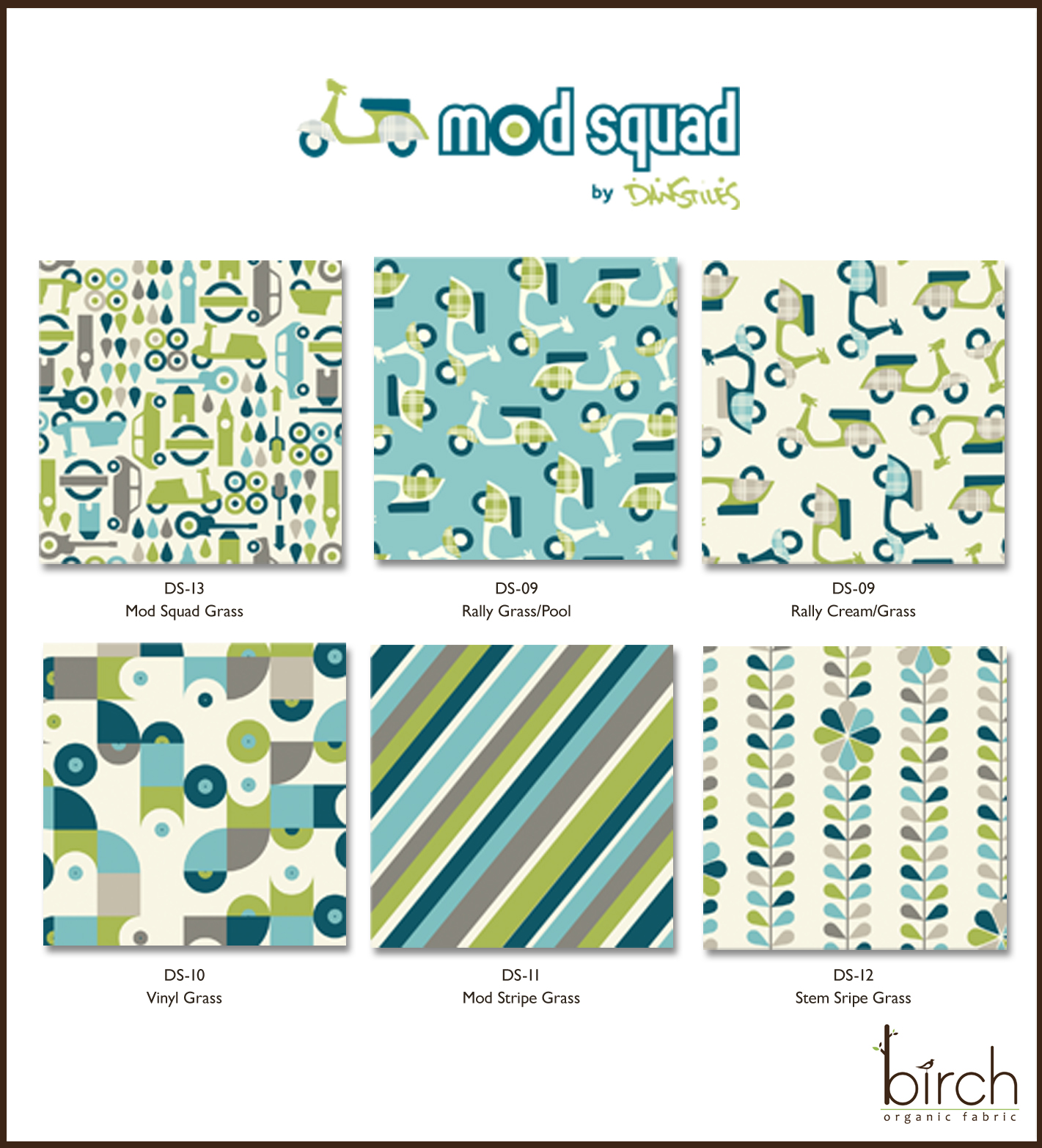 Today we are sharing Mod Squad with you, another fabulous collection designed for us by Dan StilesMod Squad is being launched in TWO color-ways; Grass/Cream/Pool and Coral/Cream/Pool.  We can't figure out which one we like best...so please let us know which one is your favorite.